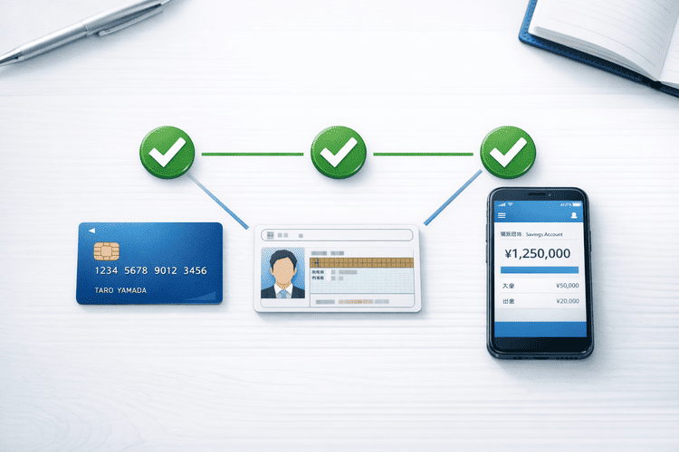 現金化業者の審査では、必ず本人確認書類(免許証など)とクレジットカードの券面、そして振込先となる銀行口座の名義がすべて一致しているかを厳格にチェックします。